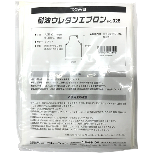トワロン エプロン 耐油ウレタンエプロン ホワイト 028
