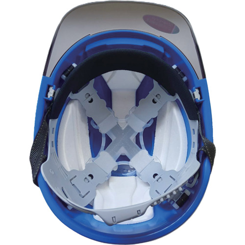 9. トーヨーセーフティ 通気孔付きヘルメット ひさし:スモーク、帽体:ロイヤルブルー NO.393F-S-RB