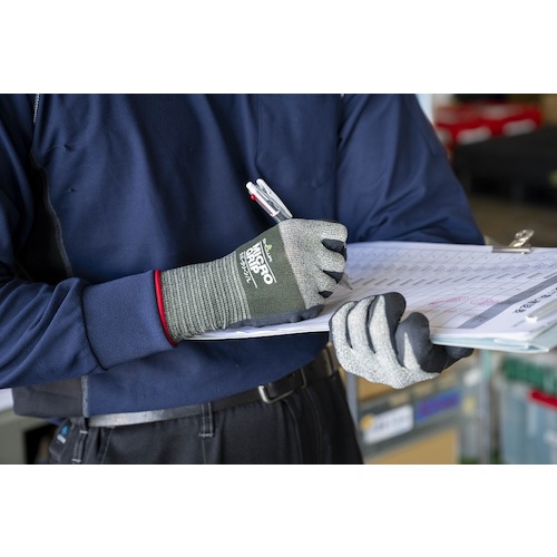 ●独自の葉脈状加工を施した天然ゴムコーティングの作業手袋で、高い滑り止め効果を発揮。