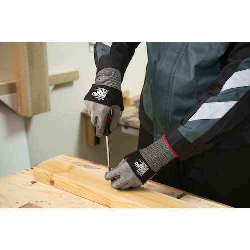 ●耐摩耗性に優れたニトリルゴムコーティングの作業手袋で、薄くて強度があるため、細かい組立作業にも適している。