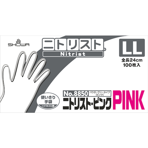 SHOWA ニトリルゴム使い捨て手袋 NO8850 ニトリスト・ピンク 100枚入 LLサイズ NO8850-LL