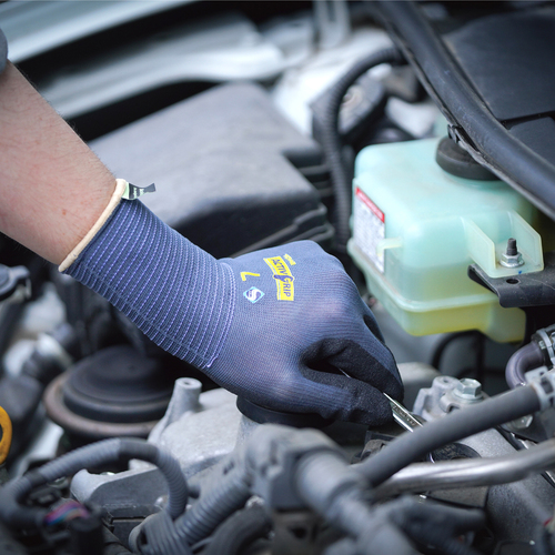 ●手のひら、指にニトリルゴムをダブルコーティングして油の浸透を防止、またフィットするので、細かな作業に適しています。