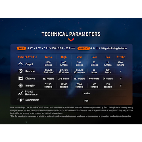 ●短時間ターボ点灯時の明るさMAX1700lmを実現しました。