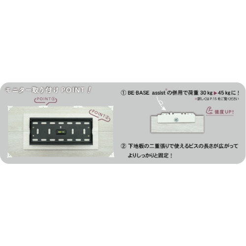 ●BE-BASE assistを併用することにより安全荷重がさらにアップします。(約45kgまで上がります)