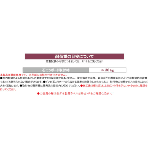●石膏ボードに取付時の使用荷重目安:約30kg