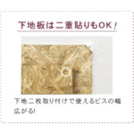 ●板の二重貼りで使えるビスの幅が広がります。