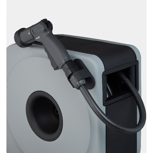 ●ボックスタイプでホース巻き取り時に小窓部分がガイドの様な役割をするため綺麗に巻き取れます。