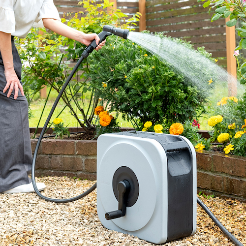●ボックスタイプでホース巻き取り時に小窓部分がガイドの様な役割をするため綺麗に巻き取れます。