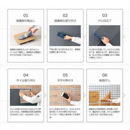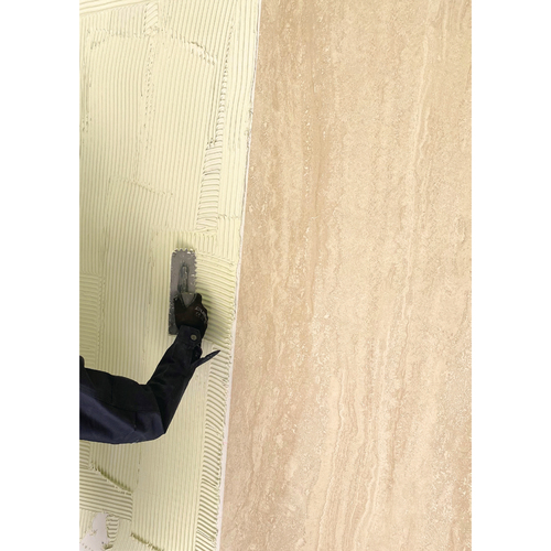 ●大型タイルの張り付けに適した速硬化タイプの接着剤です。