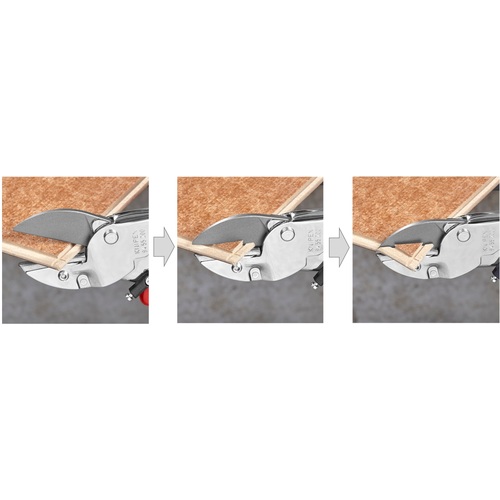 ●ゴム・PVC・レザー・木材・ホースなどをつぶさずに切断するため、固定ベースに対し刃を引きながらカットします。