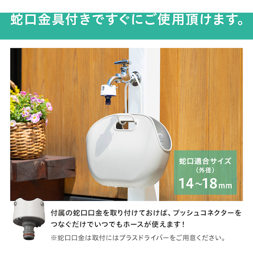 ●使わない時は付属のバックにホースを丸めて収納でき、玄関まわり等に省スペースで置くことができます。
