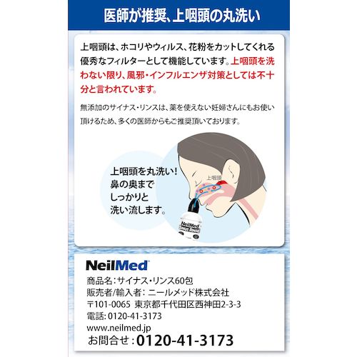●本製品には洗浄ボトルが入っておりません。別途ボトルと洗浄液の素が同梱されたサイナスリンス・キットをお買い求めください。