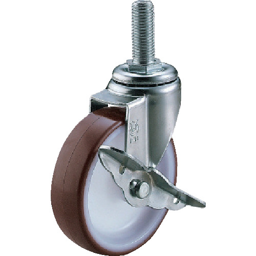 ユーエイ ねじ込み式 自在 ステンレスキャスター ウレタン 車輪径100mm ストッパー付き Eタイプ SUS-ET-S型 ネジ寸法M12×35ピッチ1.75 SUS-ET-100URS-M12-35