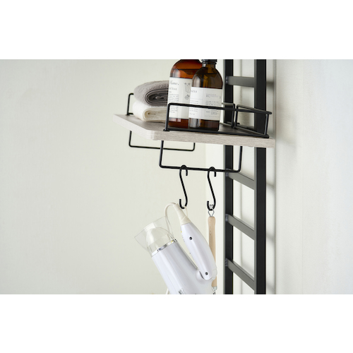 ●ハンガーバーとS字フック付きで、ハンガーやタオル、ドライヤーなども掛けられ便利です。