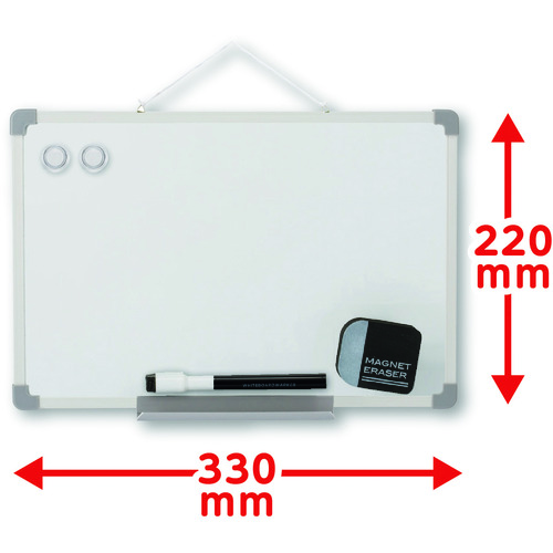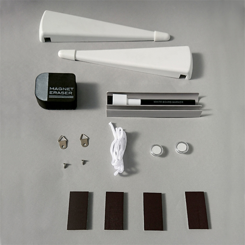 ●スタンド、ボードマーカー(黒)、イレーサー、トレー、吊り下げひも、フック金具、ネジ、マグネット2個、裏面用マグネット