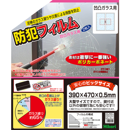 光 防犯フィルム 凹凸ガラス用2p W390×H470 BGF4741