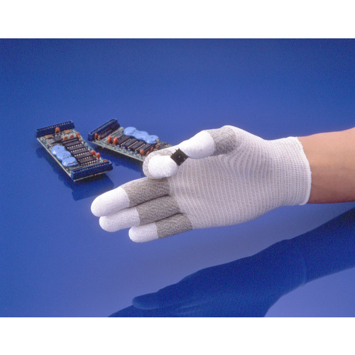 ●指全体を導電系のみで編み上げた静電気対策用指先すべり止め手袋です。