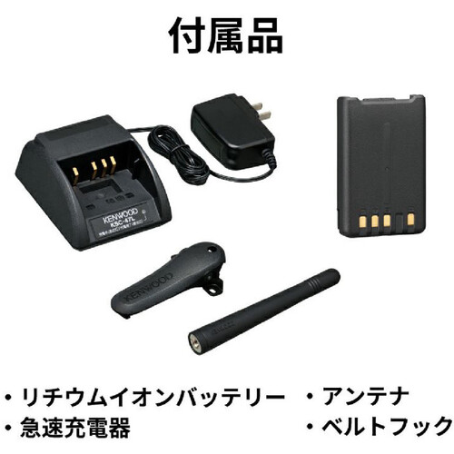 ●リチウムイオンバッテリー、急速充電器、アンテナ、ベルトフック、申請書類一式●リチウムイオンバッテリー●急速充電器●ベルトフック●アンテナ●取扱説明書●登録申請書類一式