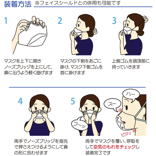 ●PFE(微粒子ろ過効率):米国NIOSH規格による塩化ナトリウム微粒子に対し、95%以上の捕集効果