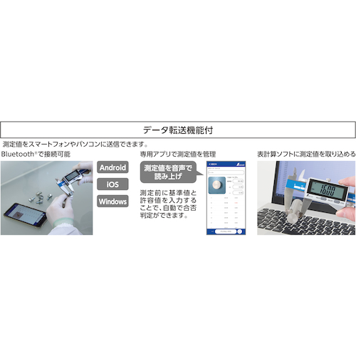 ●Bluetooth通信機能付で、測定値をスマートフォンやタブレット、パソコンに送信できます。
