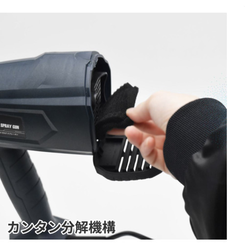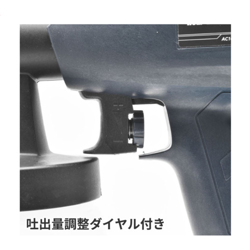 ●2種類のノズルと、3種類の噴射パターンを選択でき、塗料の吐出量をダイヤルによって調節できます。