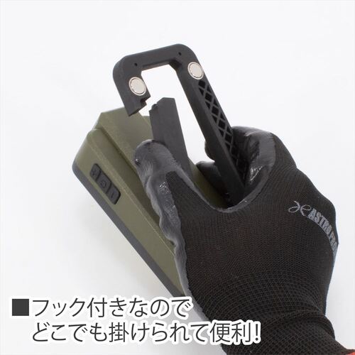 ●本体ハンドル部底面には、マグネットとフックが付いています。