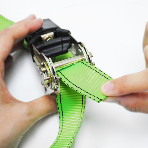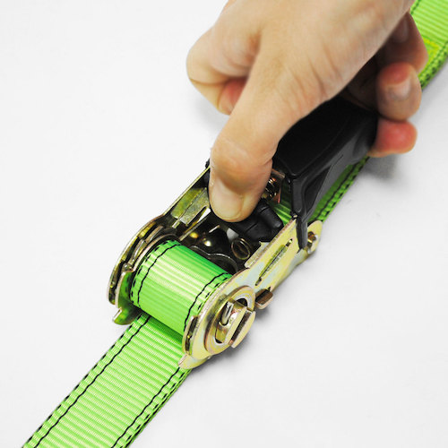 ●二輪車の積載や荷物の固定などに使用する、ラチェット式のタイダウンベルトです。