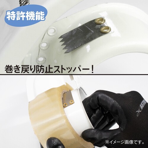 ●巻き戻り防止ストッパー(特許機能)が付いているので、テープカット後に逆回りしません。