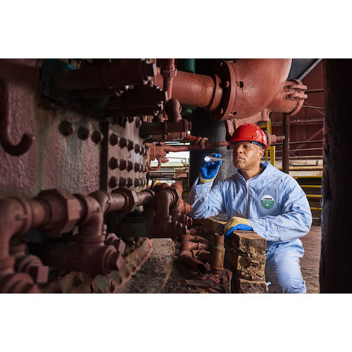 ●通常の使い捨て防護服は着火すると燃え広がりますが、同製品は着火しても火元から離れると自己消火するので、難燃作業服と併用頂くことで溶接作業を伴うメンテナンス作業等で効果を発揮します。