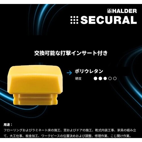 HALDER SECURAL plusショックレス 無反動ハンマー ポリウレタン(イエロー) 頭径30x40mm、長さ325 mm 3380.140