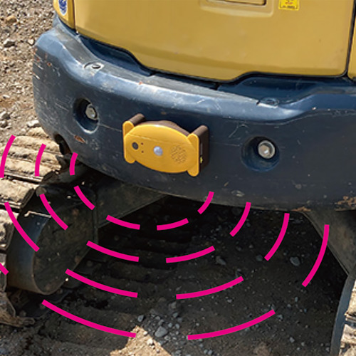 ●重機背面に強力マグネットで簡単取付、音声で接近警告することで作業員と重機の接触事故を防止します。