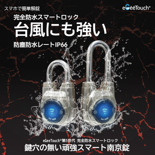 JSBTECH 防じん・防水スマート南京錠eGeeTouch第5世代 IP66(ロングシャックル)5-02502-84日本語パッケージ 5-02502-94