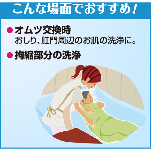 ●片手で使えて、すぐに使える泡洗浄料です(肛門周辺・陰股周辺部等にもお使いください)。