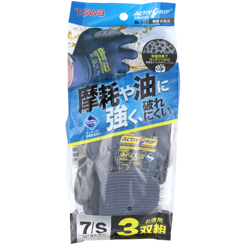 9. トワロン まとめ買い ニトリル背抜き手袋 アクティブグリップアドバンス 7/S (3双入) 533-7S