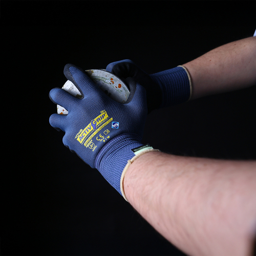 ●手のひら側のニトリルゴムは二重コーティングですので、油の浸透を防止します。