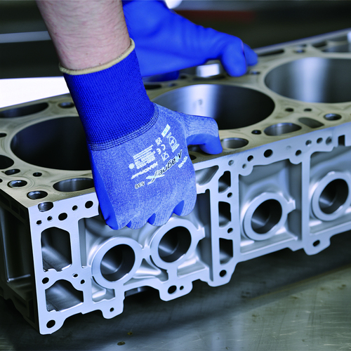 ●コーティングに採用されている軟化配合と、伸縮性の良いポリウレタン弾性糸、ナイロン糸、15ゲージ編手の組み合わせが、抜群のフィット感を生み出しています。
