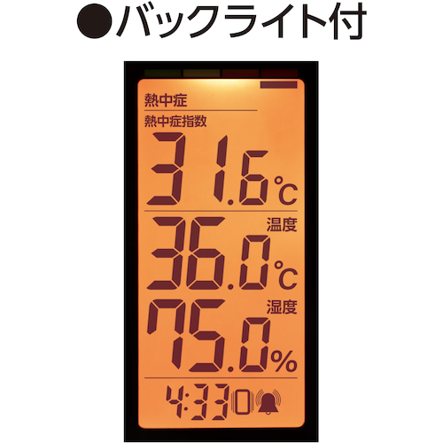 ●測定範囲、温度:0~50℃、熱中症指数:21.1~51.0℃、湿度:20~95%、乾燥指数:1.0~17.3g/[[M3]]