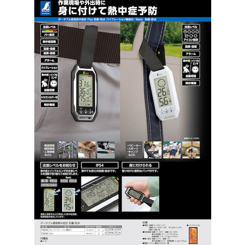 9. シンワ ポータブル簡易熱中症計 Plus 防塵・防水 バイブレーション機能付 73239