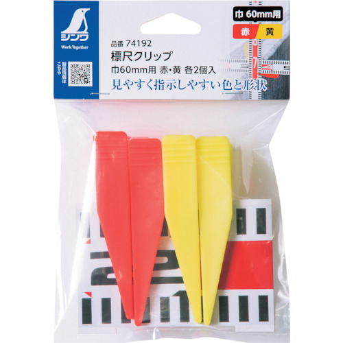 シンワ 標尺クリップ 巾60mm用 赤・黄 各2個入 74192