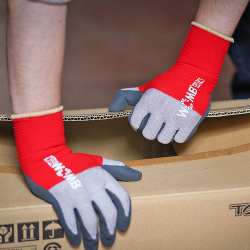 9. トワロン 天然ゴム背抜き手袋 WOMB-MF2高視認 レッド S 743-S