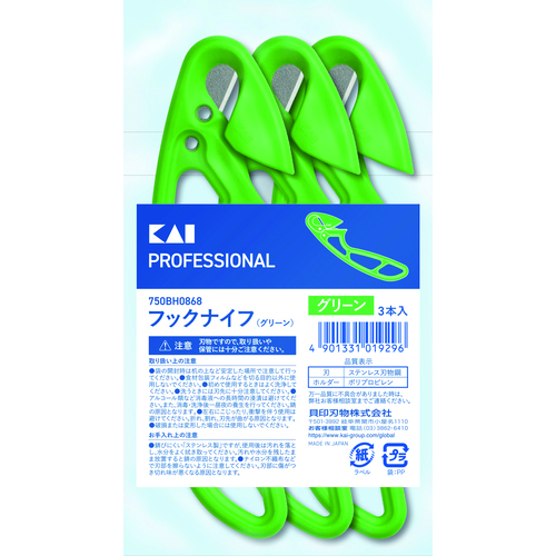 貝印刃物 異物混入対策フックナイフ(グリーン)3本入 750BH0868