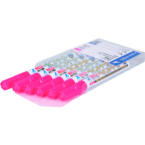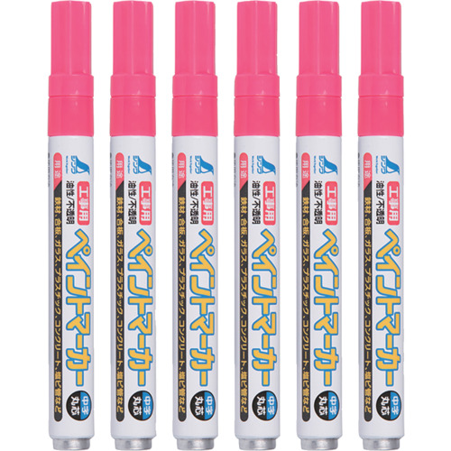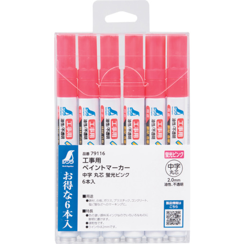 シンワ 工事用 ペイントマーカー 中字 丸芯 蛍光ピンク 6本入 79116