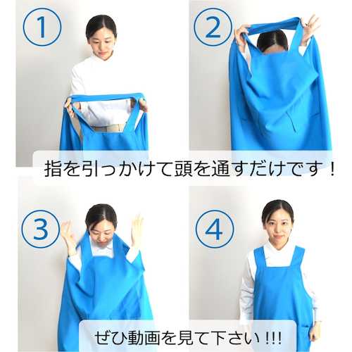 ●頭から被るだけの簡単ワンステップで着用できるエプロンなのに着崩れなくストレスを感じません。