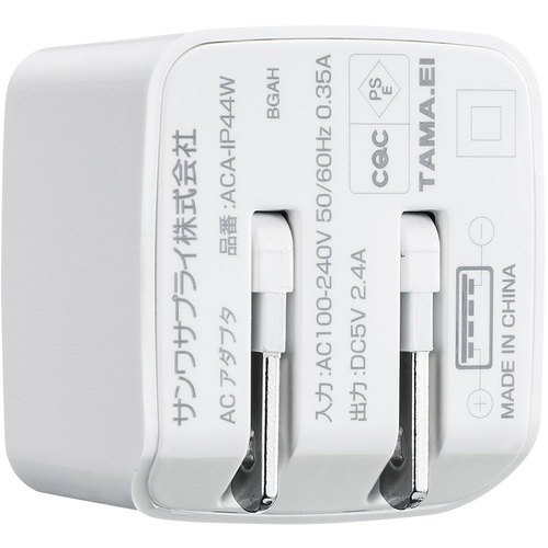 SANWA USB充電器(2ポート・合計2.4A・ホワイト) ACA-IP44W