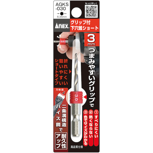 アネックス グリップ付下穴錐ショート 1本組 3mm AGKS-030