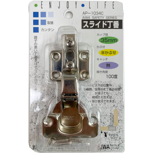 アイワ金属 スライド丁番 35mm 半カブセ AP-1034C AP-1034C