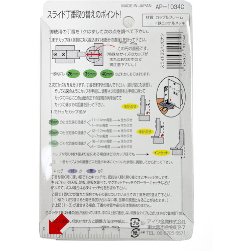 9. アイワ金属 スライド丁番 35mm 半カブセ AP-1034C AP-1034C