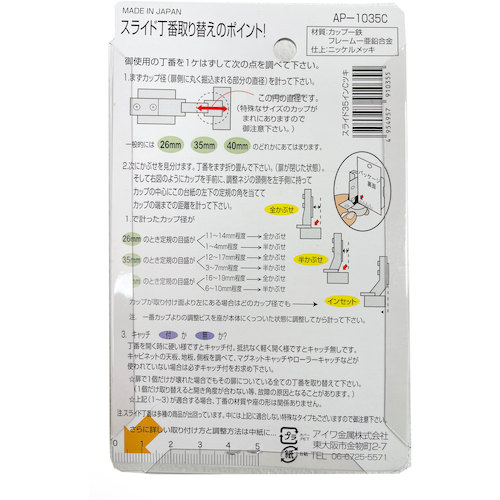 9. アイワ金属 スライド丁番 35mm インセット AP-1035C AP-1035C