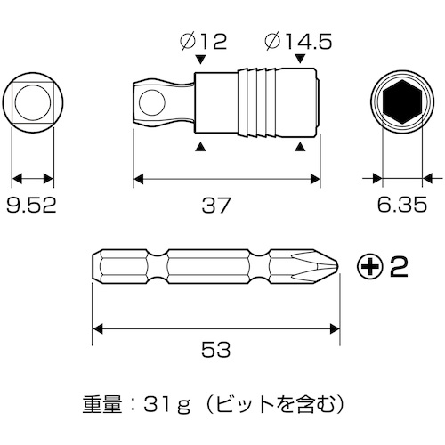 アネックス ビット交換式ソケットアダプター 差込角9.52mm ASAD-3E