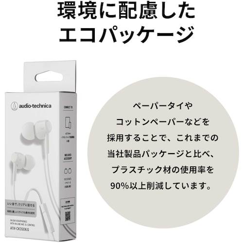 ●ロングセラーのイヤホン ATH-CK350シリーズを再生プラスチックでアップデートした、人と地球にやさしいイヤホンです。
